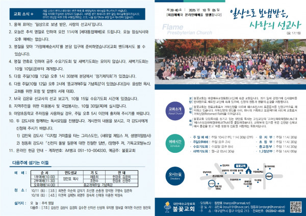 25.10.05. 주보 페이지 정보 작성자 불꽃교회 작성일25-10-04 10:23 조회67회 댓글0건 목록 본문 25.10.05. 주보 페이스북 공유 트위터 공유 구글+ 공유 댓글목록 등록된 댓글이 없습니다. 목록