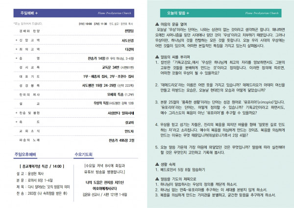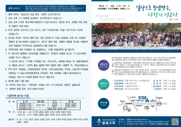 25.10.12. 주보 페이지 정보 작성자 불꽃교회 작성일25-10-11 14:34 조회39회 댓글0건 목록 본문 25.10.12. 주보 페이스북 공유 트위터 공유 구글+ 공유 댓글목록 등록된 댓글이 없습니다. 목록