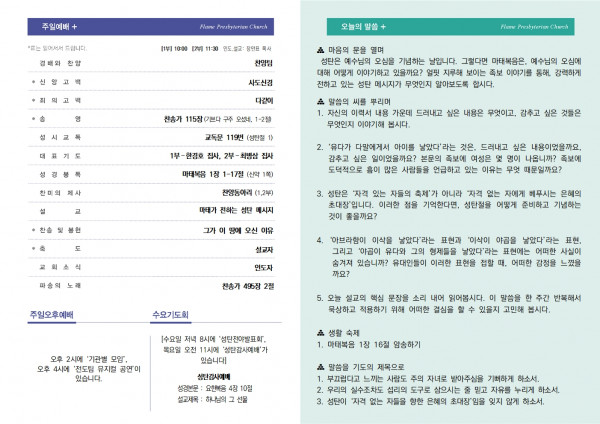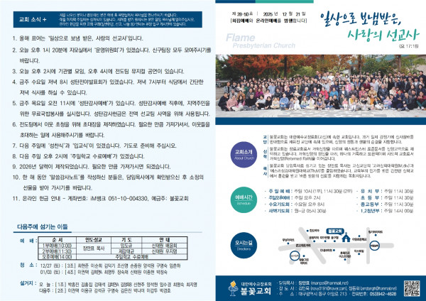 25.12.21. 주보 페이지 정보 작성자 불꽃교회 작성일25-12-20 13:44 조회5회 댓글0건 목록 본문 25.12.21. 주보 페이스북 공유 트위터 공유 구글+ 공유 댓글목록 등록된 댓글이 없습니다. 목록