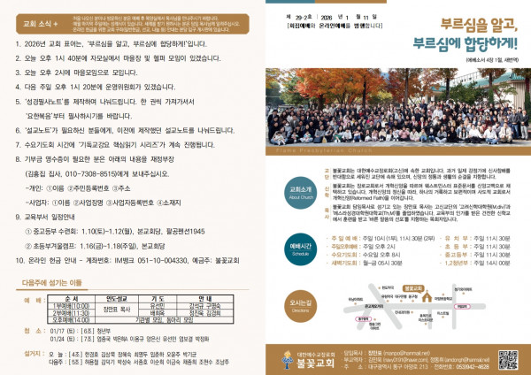 26.1.11. 주보 페이지 정보 작성자 불꽃교회 작성일26-01-10 17:25 조회6회 댓글0건 목록 본문 26.1.11. 주보 페이스북 공유 트위터 공유 구글+ 공유 댓글목록 등록된 댓글이 없습니다. 목록