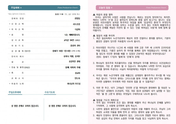 26.2.15. 주보 페이지 정보 작성자 불꽃교회 작성일26-02-14 14:27 조회11회 댓글0건 목록 본문 26.2.15. 주보 페이스북 공유 트위터 공유 구글+ 공유 댓글목록 등록된 댓글이 없습니다. 목록