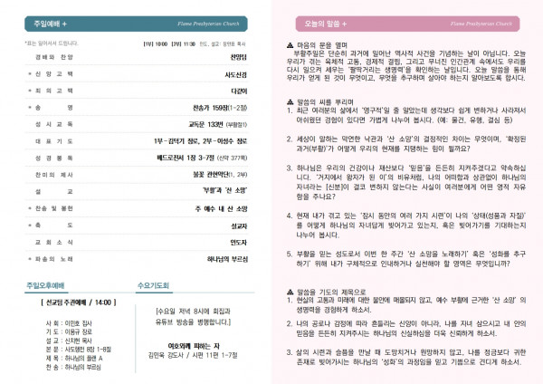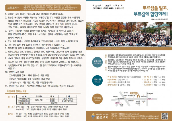 26.4.5. 주보 페이지 정보 작성자 불꽃교회 작성일26-04-04 15:02 조회4회 댓글0건 목록 본문 26.4.5. 주보 페이스북 공유 트위터 공유 구글+ 공유 댓글목록 등록된 댓글이 없습니다. 목록