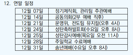 8. 내년 교인수첩 제작을 위해, 개인 사진 촬영을 합니다. 등록한 지 2년 이내의 분들은 사진 촬영에 협조해 주시기를 바랍니다.