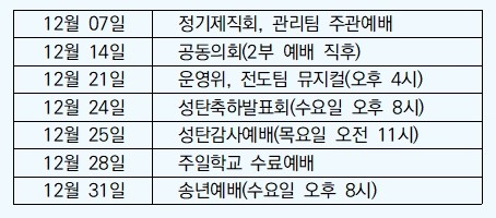 10. 연말 일정(일정표 참고)